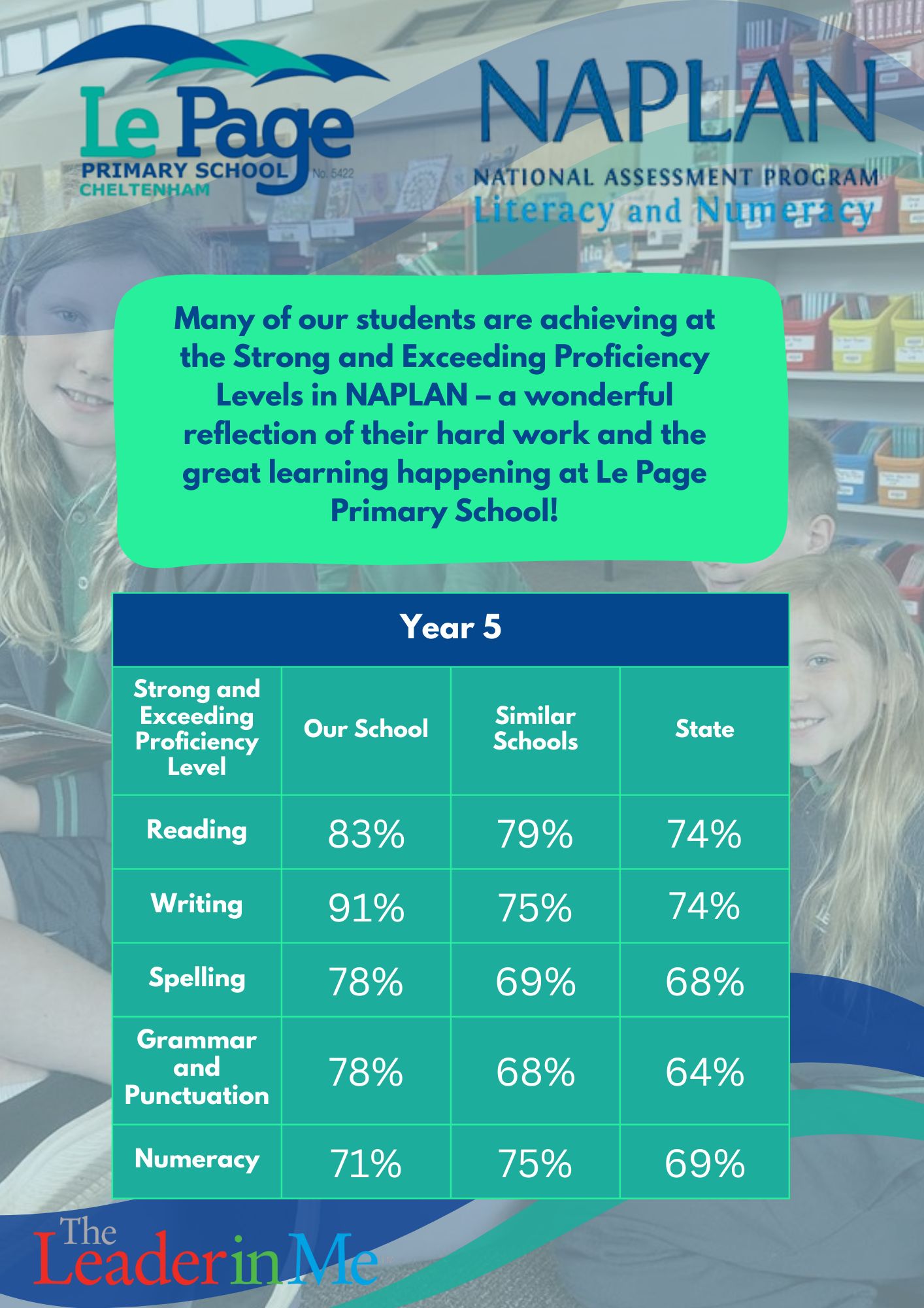 Alongside our positive NAPLAN results, these outcomes reflect the dedication of our staff, students, and families in creating a school where every child can thrive.